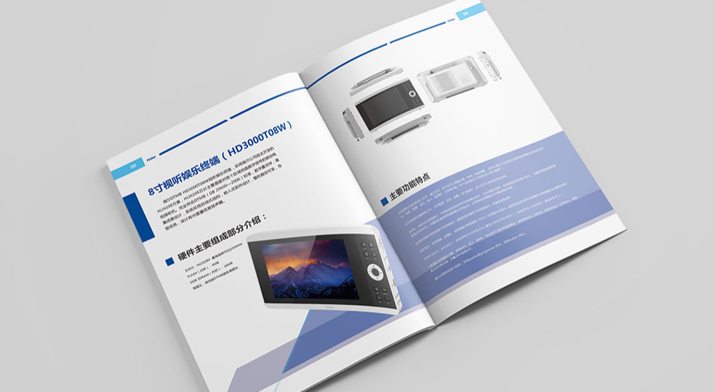 产品画册设计要形象美观清爽、简洁大方、时尚科技,框架条理清晰,从视觉上加深人们的印象,让人眼前一亮。画册页面的排版要简洁自然,元素间关系适当、协调,插图精美,文字简单明了,凸显产品特点,让人一目了然,直观快速的了解产品,达到企业产品宣传的目的。