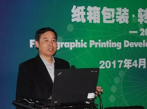 中国包装盒印刷协会柔印分会顾问蔡成基以“瓦楞纸箱——从运输包装走向销售包装的关键”为题,向观众分享了印刷质量与成本的关系,VOCs排污收费给水墨柔印带来了发展机遇。
