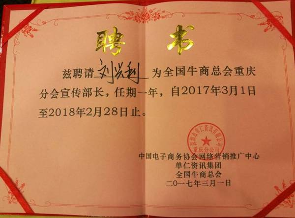 同时,由于优异的表现征服了评委,刘总荣誉担任牛商会上海分会宣传部长!