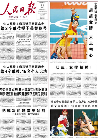今天,《人民日报》头版评论员文章以“壮哉,女排精神!”为题再次赞扬了可贵的女排精神,赞扬了这一时代发展不可缺失的精神。